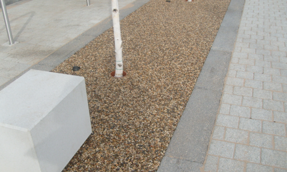 The system of mixing gravels with clear resin can also be used indoors and its versatility means specifiers and manufacturers are continually finding new applications for the installation.